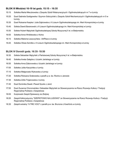 przyznało nagrody II Łomżyńskiego Festiwalu Kolęd i Pastorałek oraz zakwalifikowało do finału Międzynarodowego Festiwalu Kolęd i Pastorałek 4 podmioty wykonawcze:
