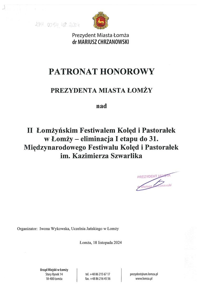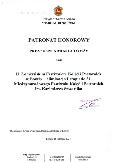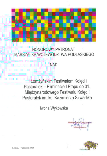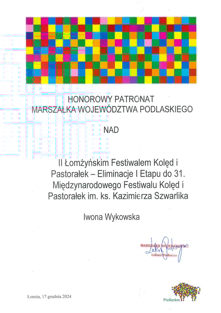 WYRÓŻNIENIA II Łomżyńskiego Festiwalu Kolęd i Pastorałek: